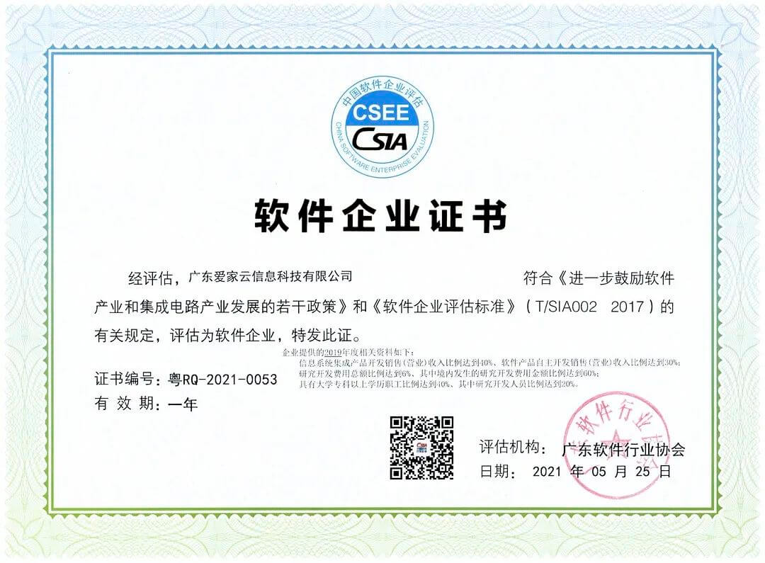 近日,廣東愛家云信息科技有限公司(以下簡(jiǎn)稱“愛家云”)順利通過廣東軟件行業(yè)協(xié)會(huì)的評(píng)定認(rèn)可,榮獲協(xié)會(huì)頒發(fā)的雙軟證書——《軟件企業(yè)證書》和《軟件產(chǎn)品證書》,愛家云正式成為“雙軟企業(yè)”!
